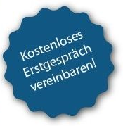 Blaues Siegel mit weißer Schrift: Kostenloses Erstgespräch vereinbaren für Beratung.